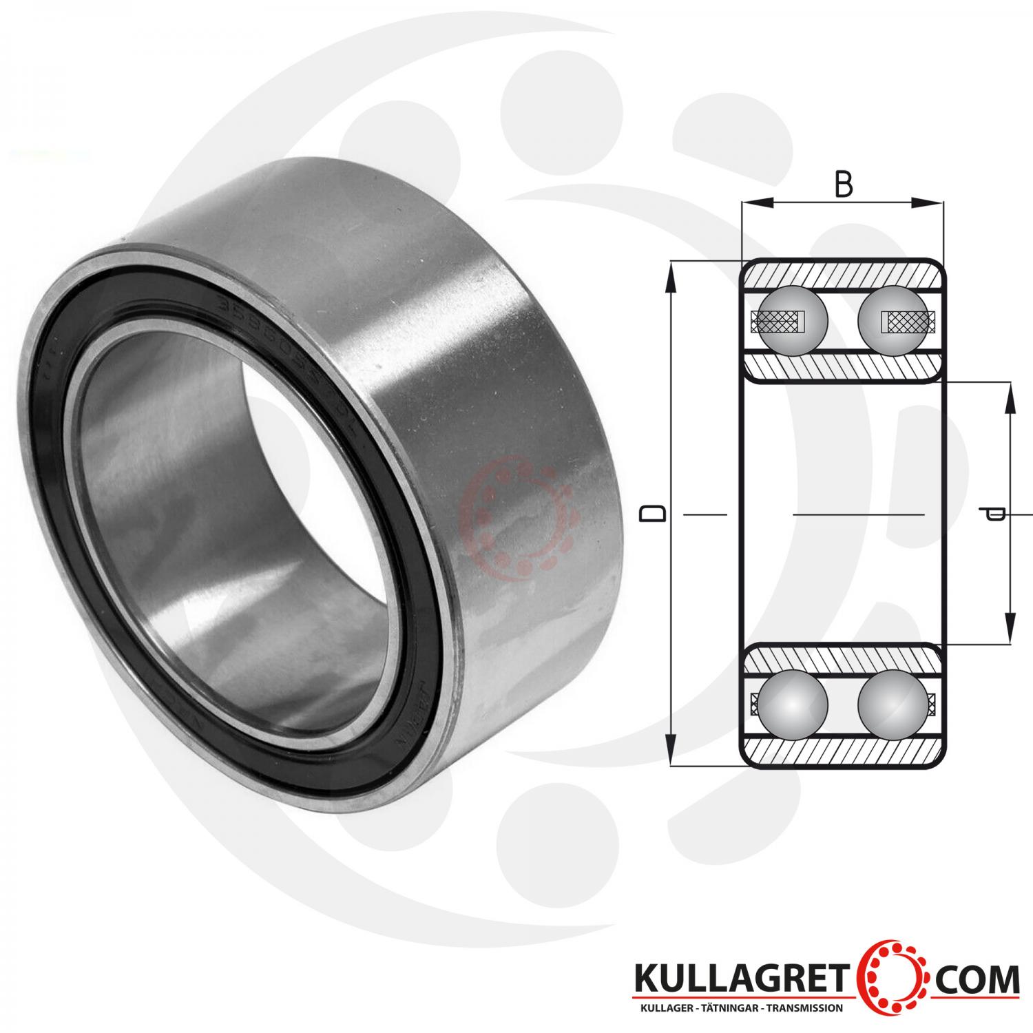 Detta lager är ett dubbelradigt vinkelkontaktkullager. Detta lager används vanligtvis i AC-kompressor / kompressorer på fordon, där av extra namnen som AC-lager och Kompressorlager.
