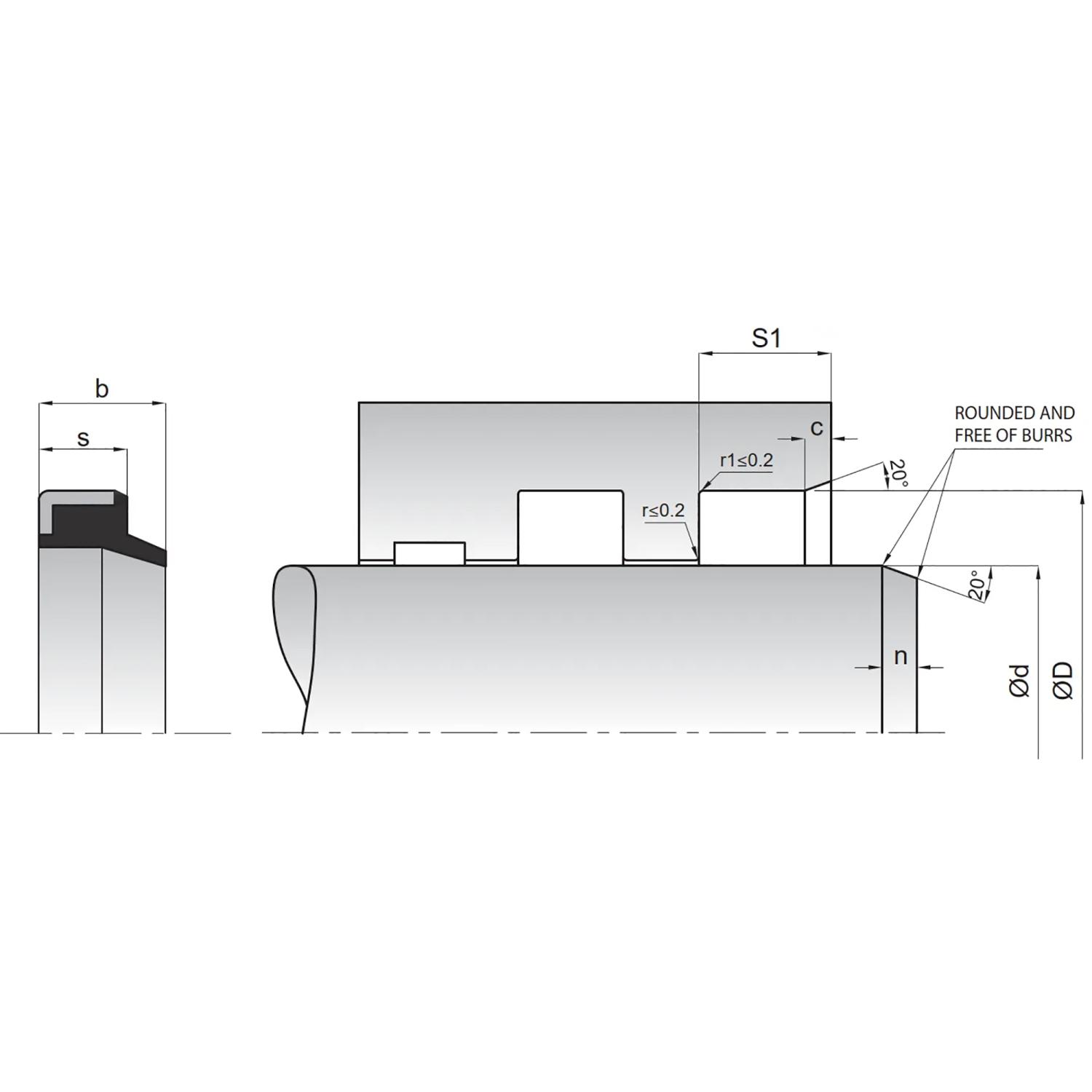 | MATERIAL: | NBR 85 Shore A med Stålmantel |