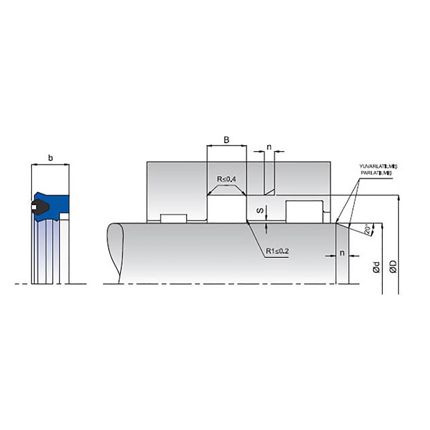 K31är en U-manschett med symmetrisk profil med backup-ring. Denna tätning ska användas som kolvstångstätning.
