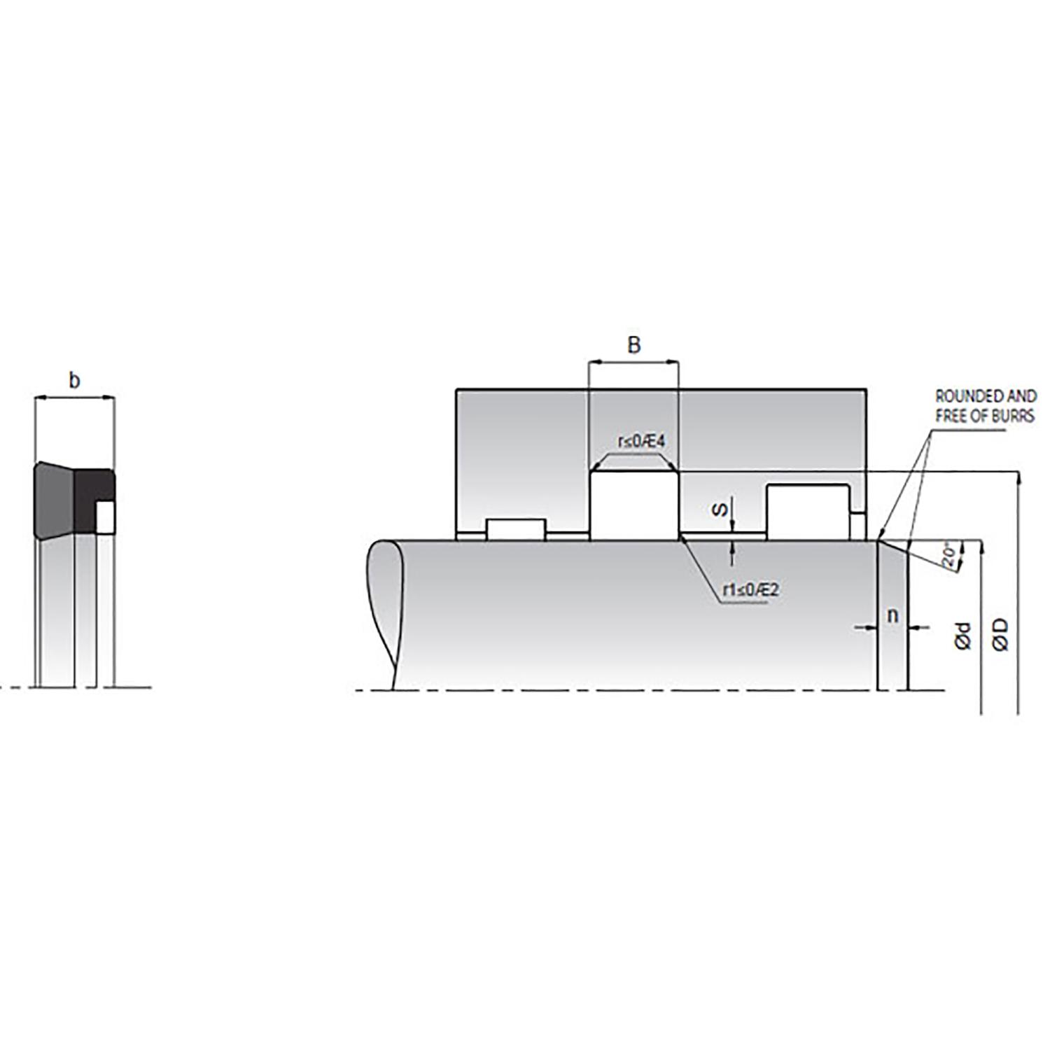 Används som kolvstångstätning | Vävarmerat nitrilgummi som är vulkaniserat och bildar ett integrerat tätningselement tillsammans med en stödring