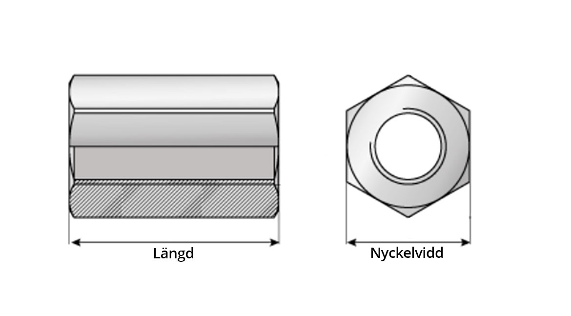 Långmutter är en hög sexkantsmutter som används för att sammanfoga och förlänga gängstänger och skruvar.