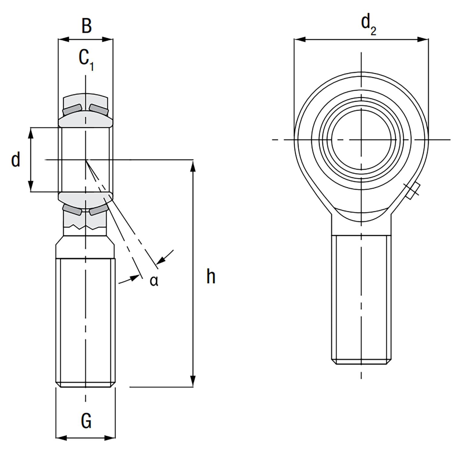 Detta länkhuvud passar till axlar med diameter 16mm. Länkhuvudet har en utvändig VÄNSTERGÄNGA som är M16