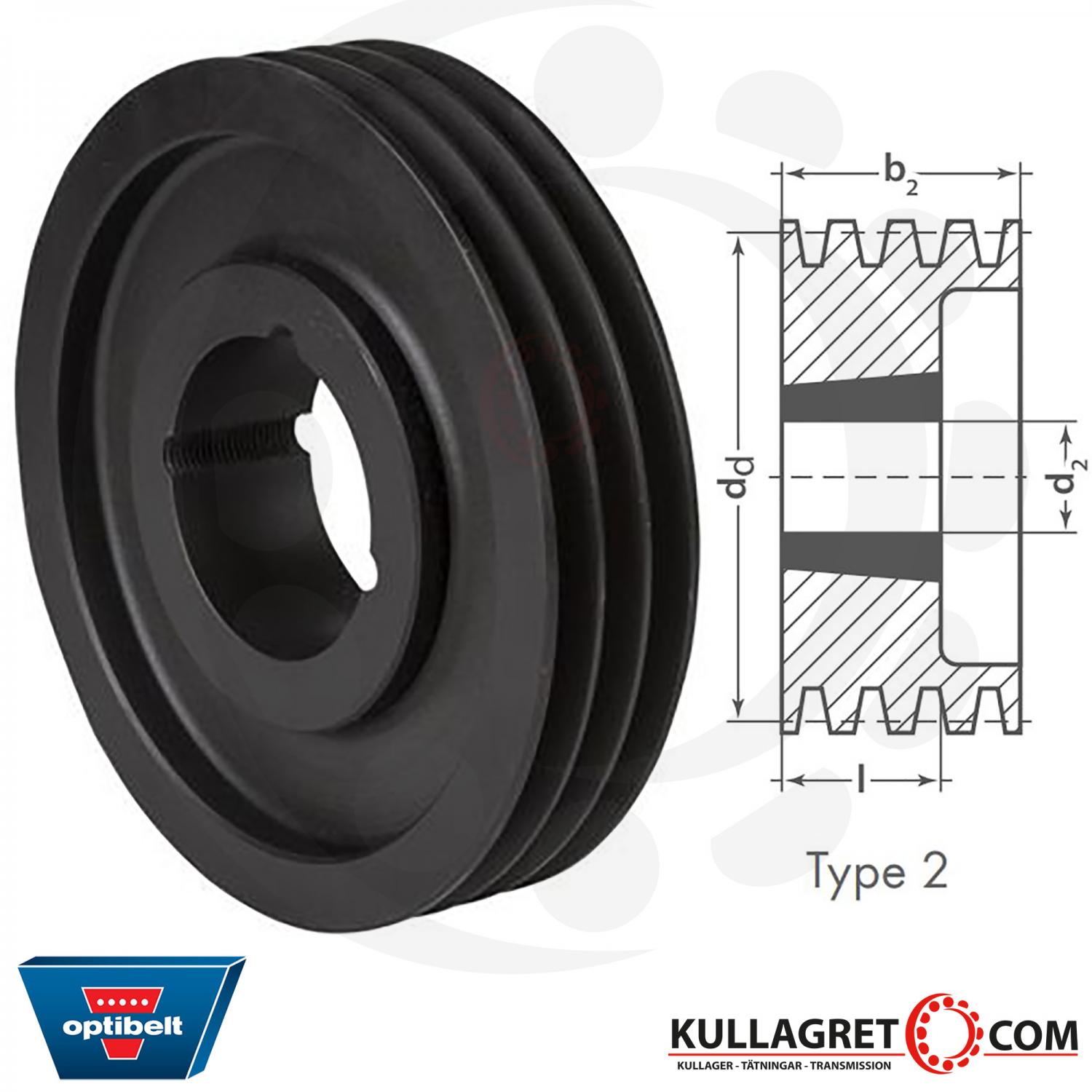 Nedan hittar du mer ingående information om denna SPB Kilremskiva med 3-spår från Optibelt som är anpassad för 2012 Klämbussningar