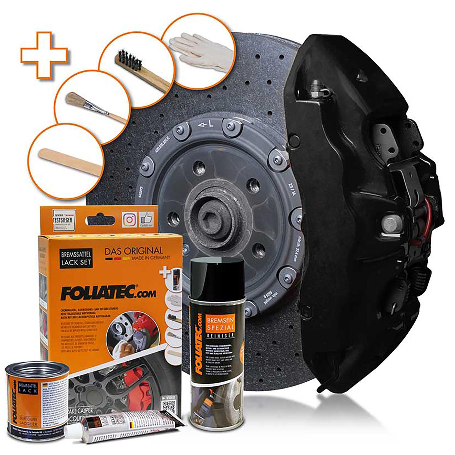 Foliatec 2176 Svart matt (Midnight Black matt) Bromsoksfärg 2-komponentMed denna bromsoksfärg från Foliatec ger du ditt fordon ett mycket individuellt och sportigt utseende. Samtidigt som färgen skyddar dina bromsok mot kemikalier och korrosion och så blir dina bromsok mycket mycket lättare att rengör + att det ser förbaskat snygga ut. Det enda du behöver demontera på bilen för att kunna måla dina bromsok är fälgen. En sådan här sats räcker till 4st bromsok. TIPS från oss på Kullagret Blanda enbart till färg för ett bromsok i taget och i en glasburk eller plåtskål Vi brukar rekommendera 3 lager på varje ok för att få en riktigt bra skyddsbarriär och för att vara säker på att allting är täckt. Denna bromsoksfärg kan användas i färgsprutor även om du använder Foliatec 2198 Bromsoksfärgs Thinner. |
