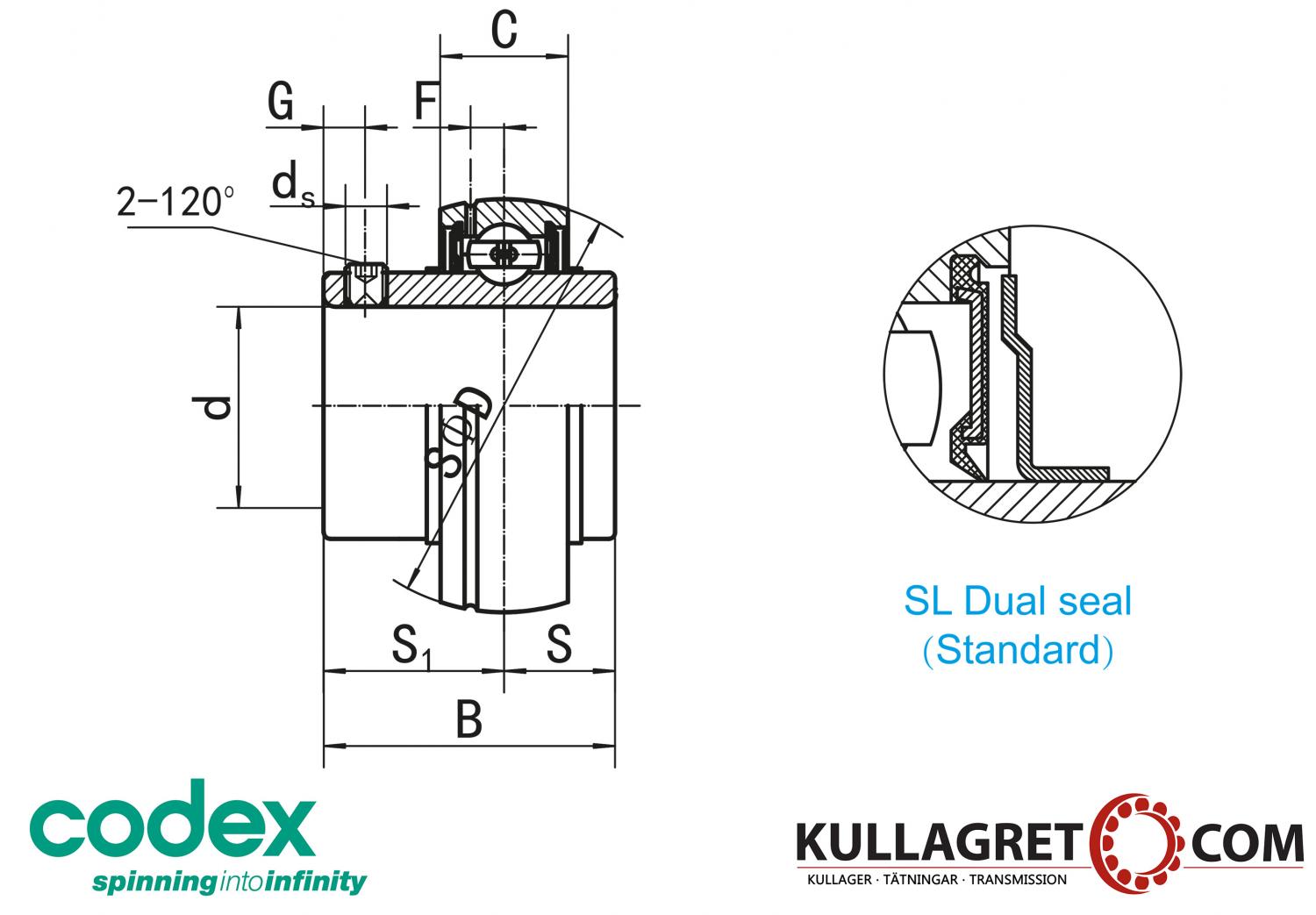 UC / YAR är ett insatslager med 2 stycken stoppskruvar på innerringen.