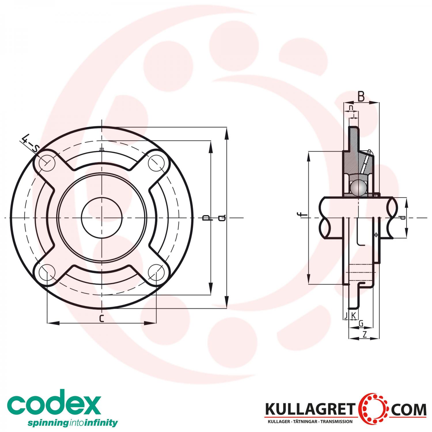 UCFC 208 är en rund lagerenhet med 4 fästhål. På baksidan finns en styrkant för centrering av enheten.