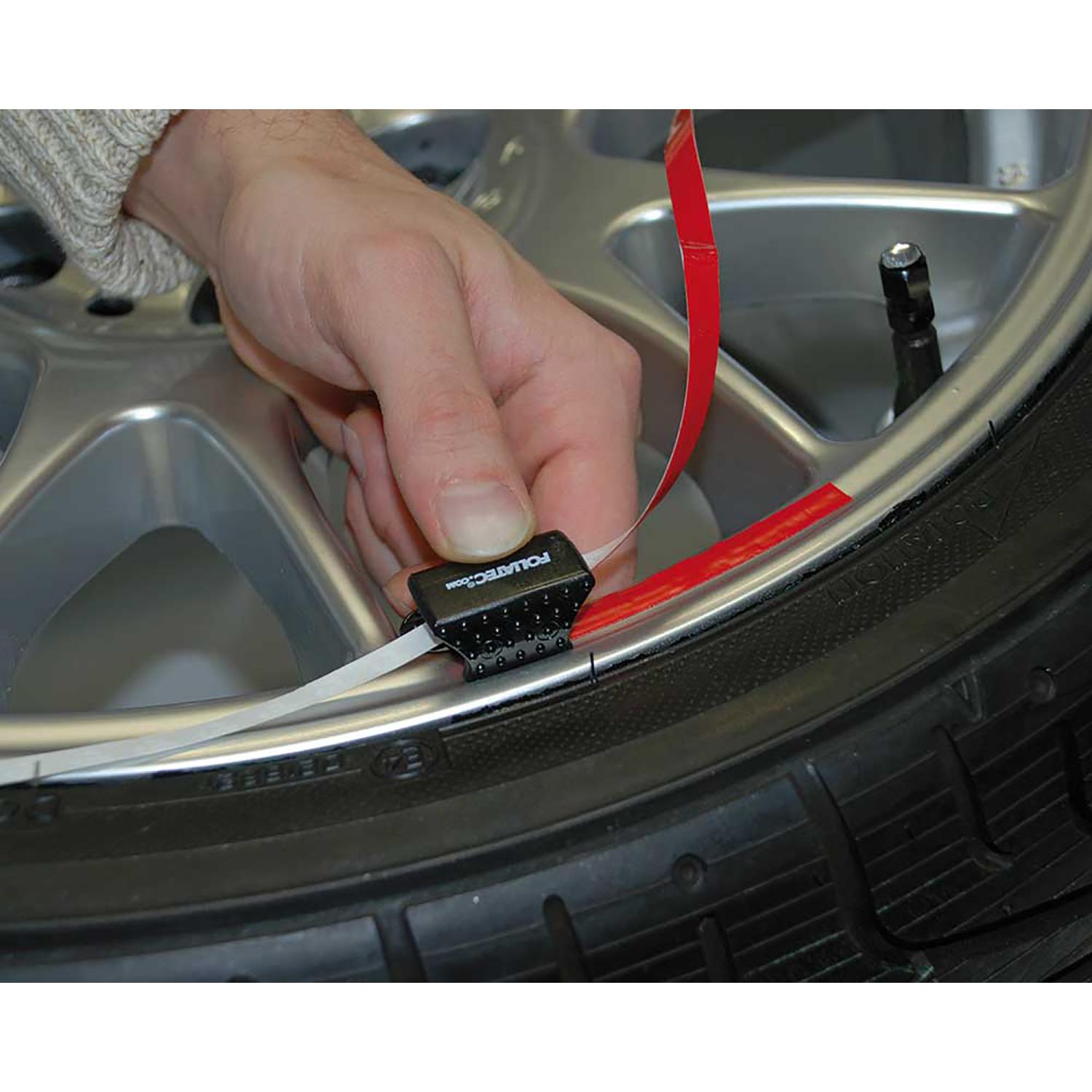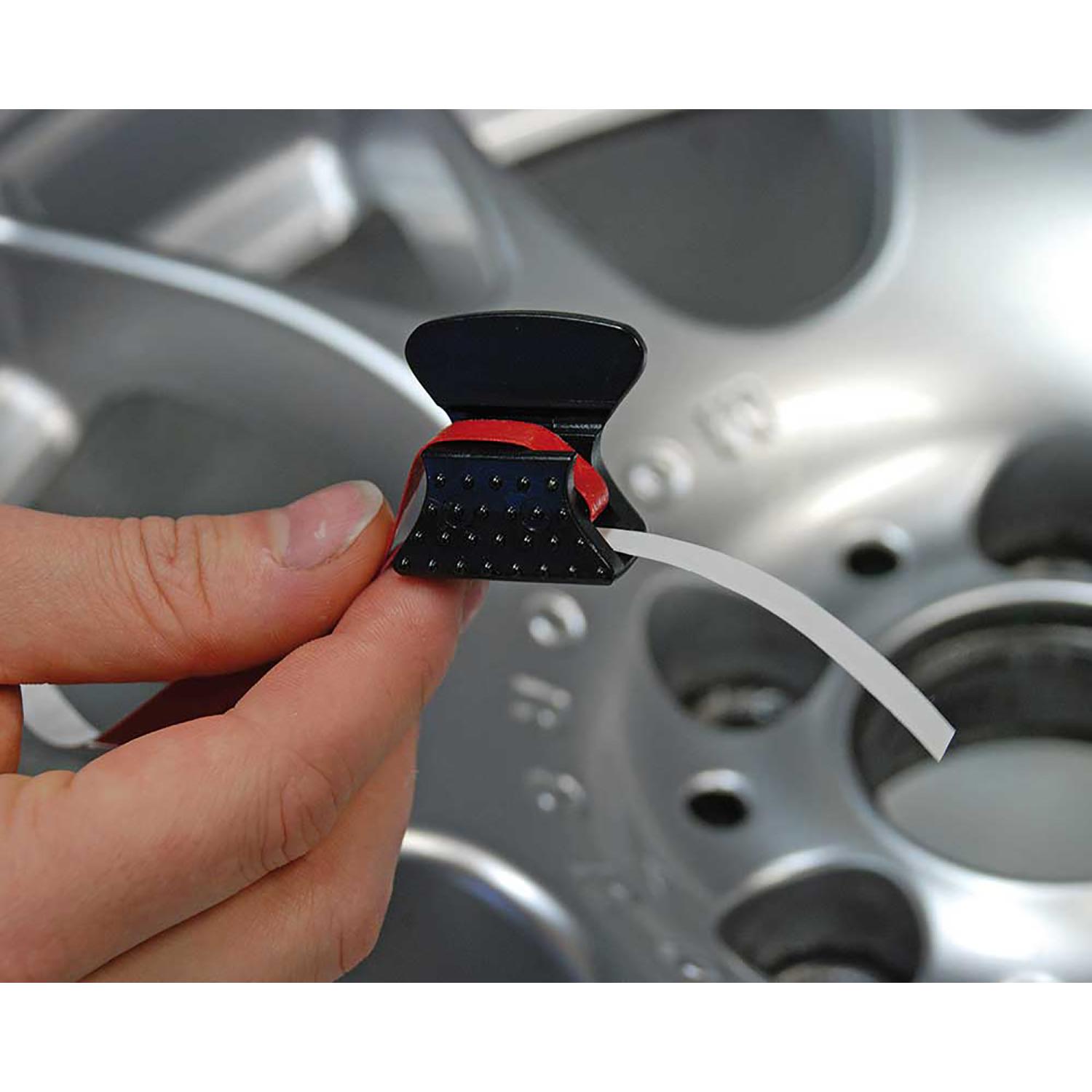 | EGENSKAPER Självhäftande Med monteringsverktyget får du en exakt montering Tvättsäker Räcker till 4 fälgar Produktlivslängden ligger på ca 2år Värmebeständig upp till +90°C Bredd: 6mm Innehåller 4 rullar á 2,15m och 1st testremsa på 0,4m |
